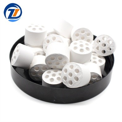 PM多孔支撐劑根據(jù)其外觀形狀又稱齒輪形保護(hù)劑或稱AIG齒輪形保護(hù)劑,是一種新型的石油化工加氫、制氫、重整等裝置中的催化劑支撐劑、保護(hù)劑。該產(chǎn)品是我公司在綜合國外技術(shù)的基礎(chǔ)上采用了獨(dú)特的結(jié)構(gòu)設(shè)計(jì),將支撐劑做成多孔梅花柱狀(齒輪狀),使之被側(cè)放受力時(shí),底部或頂部有兩條以上承載線,增加了載荷能力,提高了側(cè)壓強(qiáng)度;花瓣的尺寸設(shè)計(jì)及軸向開孔,可以提高支撐介質(zhì)的空隙率,從而降低了催化劑床層的壓降。將該支撐劑與同類產(chǎn)品進(jìn)行對比實(shí)驗(yàn),結(jié)果表明,PM支撐劑與傳統(tǒng)支撐劑相比,強(qiáng)度提高30% ,空隙率提高45% 以上。解決了一般的催化劑惰性支撐劑等支撐材料所遇到的一些缺陷,如常用的支撐劑有球形、柱形、環(huán)形等,但球形及柱形載體強(qiáng)度高但空隙率低,床層阻力大;環(huán)形載體空隙率高但強(qiáng)度低,容易破損,影響催化劑和裝置的使用效率。同時(shí)該產(chǎn)品耐高溫,陶瓷質(zhì)耐溫達(dá)1280℃,剛玉質(zhì)耐高溫達(dá)1650℃.