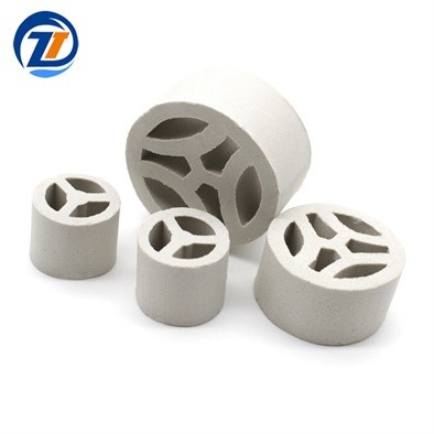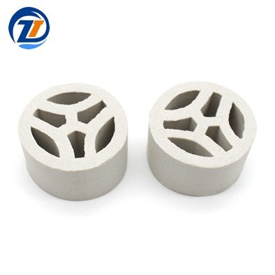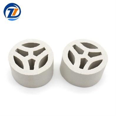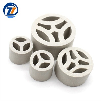 陶瓷三丫環(huán)因其優(yōu)異的工藝加工條件,如原料優(yōu)選,真空擠壓成型以及嚴格控制燒結工藝中的火焰氣氛,使得陶瓷三丫環(huán)具有瓷質致密,色澤均勻,機械強度高,耐壓力沖擊,抗熱震性能好,耐搬運不損的優(yōu)點。同時陶瓷三丫環(huán)結構空間性能好,床層使用通氣量大、比表面大、氣液分布均勻、阻力小、壓降低、強度高、氣液傳質性能比一般填料好。