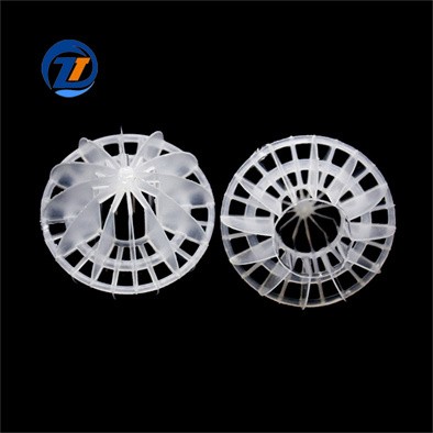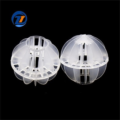 多面空心球由聚丙烯(PP)加工而成。主要應(yīng)用于冷卻塔,凈化塔中氧氣,氯氣,二氧化碳等氣體的去除。外觀成球形,主要規(guī)格有中25MM、中38MM中50MM、中76MM、中100MM。采用聚丙烯(PP)塑料制成球狀,由兩個半球合成一個球形,每個半球上根據(jù)設(shè)計需要有8-12個半扇形葉片,兩個半球的扇形葉片相互錯開。該填料特點是比表面積大,空隙率較高。但是由于葉片數(shù)偏多,彼此間有遮蔽效應(yīng),不利于液體分布和潤濕:液體大多在球體空心柱聚集,阻礙氣體暢通,因此阻力較大此種填料多用于廢氣處理和水處理工程