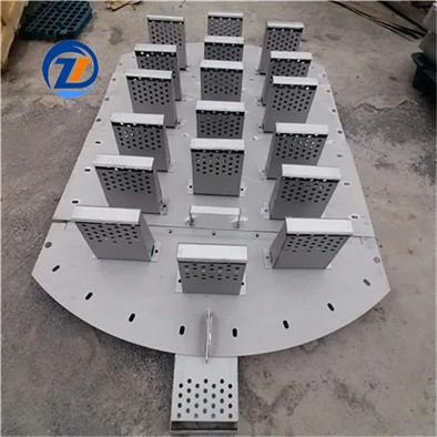 四、固閥塔盤通常是圓的也可以根據(jù)客戶要求設(shè)計(jì)為其他的形狀像矩形閥。閥腿高度也按照要求定制。固閥塔盤與篩板相比具有橫向氣相流動(dòng),從而減少了霧末夾帶。固閥成本更低,與篩板相比,操作彈性更大,可以作為篩板和浮閥塔盤之間的折中解決方案。其處理能力比篩板高10~15%,其分離性能和靈活性比浮閥塔盤的明顯提高。
