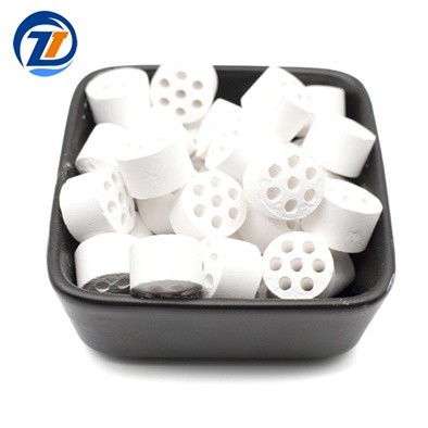 PM多孔支撐劑根據(jù)其外觀形狀又稱齒輪形保護(hù)劑或稱AIG齒輪形保護(hù)劑,是一種新型的石油化工加氫、制氫、重整等裝置中的催化劑支撐劑、保護(hù)劑。該產(chǎn)品是我公司在綜合國外技術(shù)的基礎(chǔ)上采用了獨(dú)特的結(jié)構(gòu)設(shè)計(jì),將支撐劑做成多孔梅花柱狀(齒輪狀),使之被側(cè)放受力時(shí),底部或頂部有兩條以上承載線,增加了載荷能力,提高了側(cè)壓強(qiáng)度;花瓣的尺寸設(shè)計(jì)及軸向開孔,可以提高支撐介質(zhì)的空隙率,從而降低了催化劑床層的壓降。將該支撐劑與同類產(chǎn)品進(jìn)行對比實(shí)驗(yàn),結(jié)果表明,PM支撐劑與傳統(tǒng)支撐劑相比,強(qiáng)度提高30% ,空隙率提高45% 以上。解決了一般的催化劑惰性支撐劑等支撐材料所遇到的一些缺陷,如常用的支撐劑有球形、柱形、環(huán)形等,但球形及柱形載體強(qiáng)度高但空隙率低,床層阻力大;環(huán)形載體空隙率高但強(qiáng)度低,容易破損,影響催化劑和裝置的使用效率。同時(shí)該產(chǎn)品耐高溫,陶瓷質(zhì)耐溫達(dá)1280℃,剛玉質(zhì)耐高溫達(dá)1650℃.