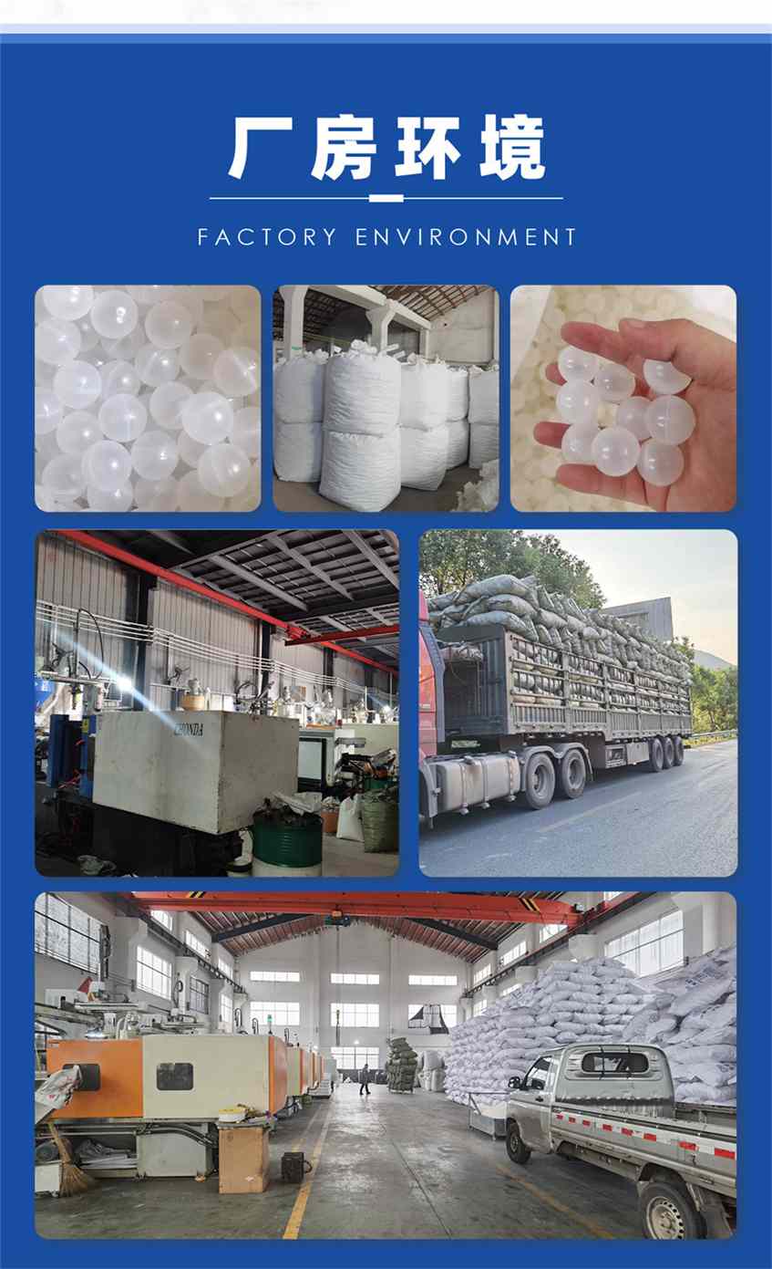 塑料空心浮球具有空隙率大、耐熱、耐化學(xué)腐蝕,壓降和傳質(zhì)單元高度低,泛點(diǎn)高、汽液接觸充分、比重小、傳質(zhì)效率高等特點(diǎn)。在各種介質(zhì)中的使用溫度為60-150攝氏度,廣泛用于石油、化工、氯堿、煤氣、環(huán)保等行業(yè)的填料塔中。 塑料空心浮球具有重心穩(wěn)定,邊與邊重疊,覆蓋效果好的特點(diǎn),可廣泛用于各種臥式酸貯槽、水處理中的凝儲(chǔ)水箱和除鹽水箱,大程度減少熱量散失,減小酸霧及空氣中的二氧化碳和氧對(duì)水的污染,保護(hù)操作人員健康,達(dá)到保持水質(zhì),節(jié)約能源,凈化環(huán)境的效果。