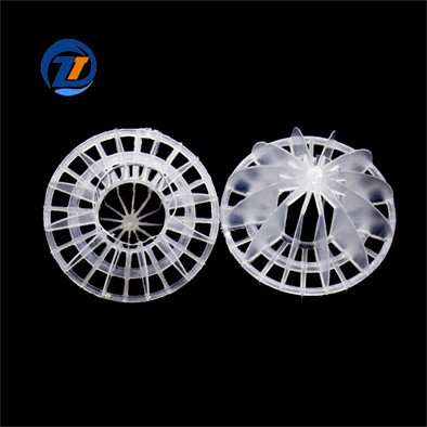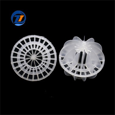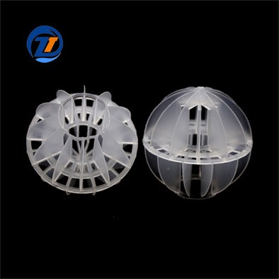 多面空心球由聚丙烯(PP)加工而成。主要應(yīng)用于冷卻塔,凈化塔中氧氣,氯氣,二氧化碳等氣體的去除。外觀成球形,主要規(guī)格有中25MM、中38MM中50MM、中76MM、中100MM。采用聚丙烯(PP)塑料制成球狀,由兩個半球合成一個球形,每個半球上根據(jù)設(shè)計需要有8-12個半扇形葉片,兩個半球的扇形葉片相互錯開。該填料特點是比表面積大,空隙率較高。但是由于葉片數(shù)偏多,彼此間有遮蔽效應(yīng),不利于液體分布和潤濕:液體大多在球體空心柱聚集,阻礙氣體暢通,因此阻力較大此種填料多用于廢氣處理和水處理工程