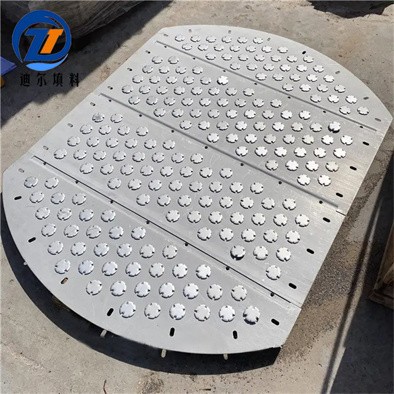 四、固閥塔盤通常是圓的也可以根據(jù)客戶要求設(shè)計(jì)為其他的形狀像矩形閥。閥腿高度也按照要求定制。固閥塔盤與篩板相比具有橫向氣相流動(dòng),從而減少了霧末夾帶。固閥成本更低,與篩板相比,操作彈性更大,可以作為篩板和浮閥塔盤之間的折中解決方案。其處理能力比篩板高10~15%,其分離性能和靈活性比浮閥塔盤的明顯提高。