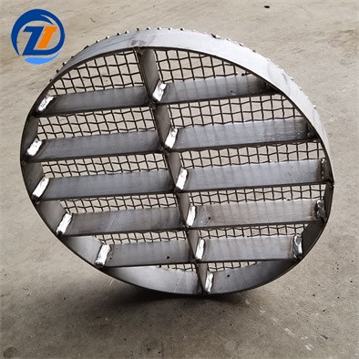 填料壓緊網(wǎng)板:填料壓緊網(wǎng)板由鋼圈、柵條及金屬網(wǎng)制成。鋼圈及柵條的厚度和高度由壓緊力而定。金屬網(wǎng)孔大小以所用填料不能自由通過為度,可使用鋼板網(wǎng)和金屬編織的網(wǎng)。鋼圈外徑小于塔內(nèi)徑20mm左右,與塔壁間隙處,可在塔壁上點焊限位臺肩,不能使鋼圈移動松位。對于有法蘭的小塔,它可制成整體式,對于有人孔的大塔,則制成分塊式,通過人孔在塔內(nèi)組裝。
